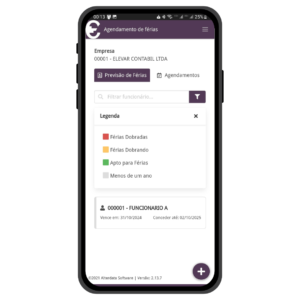 O sistema permite fazer o agendamento das férias, para que a contabilidade faça o cálculo e envie o recibo.
